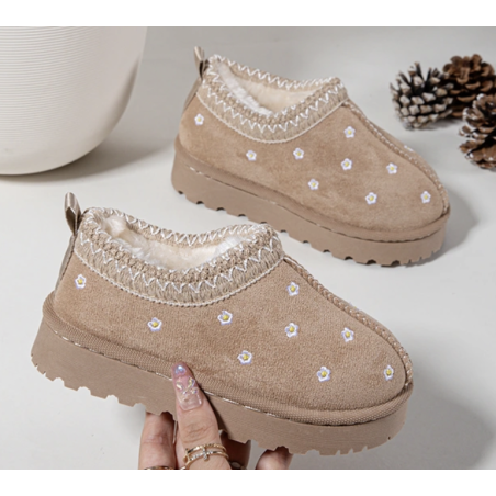 Leur doublure toute douce garde les pieds bien au chaud, et leur semelle souple permet de courir, jouer et rêver librement
