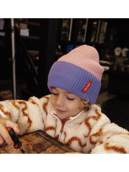 Découvrez le Bonnet pour enfants et bébés, Flow Maya. 100% coton bio, revers large, sans pompon, look stylé assuré. Parfait pour l'automne-hiver. Doux, coloré, bicolore, c'est un modèle adoré par les kids, dès 9 mois.