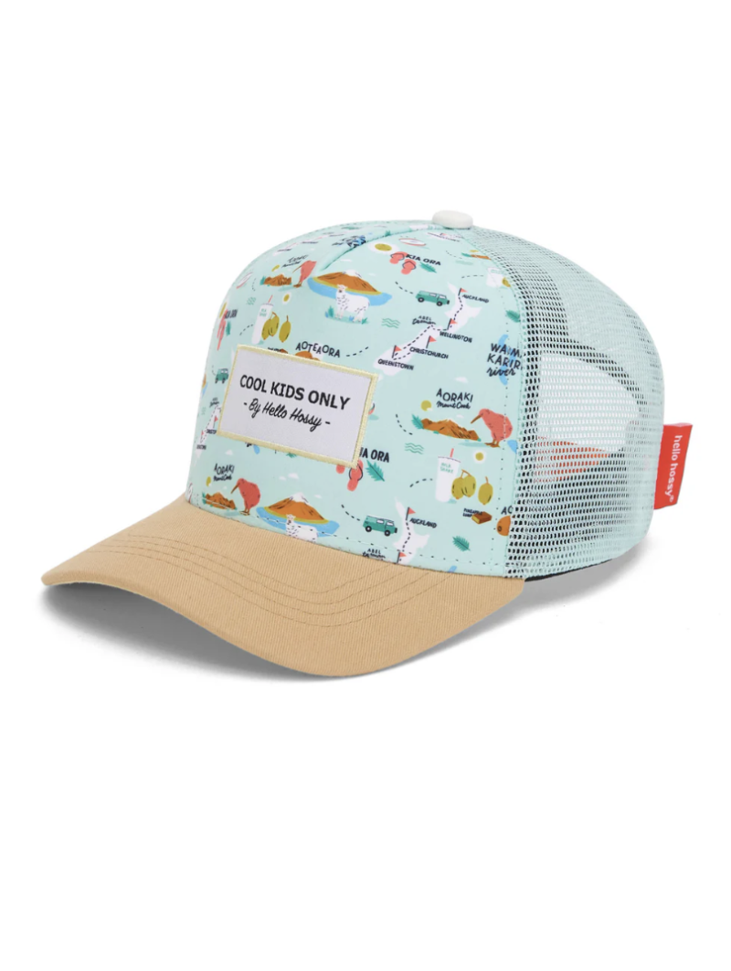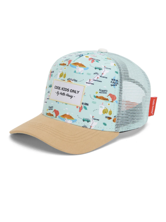 Équipez les kids pour les beaux jours avec notre Casquette pour enfants et bébés, New Zealand. Une casquette trucker appréciée pour son motif voyage, sa couleur lumineuse et sa visière courbée. À assortir au maillot de bain garçon du même Nom.