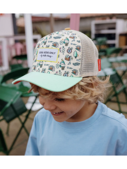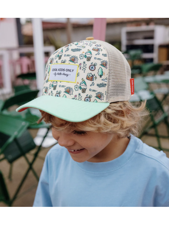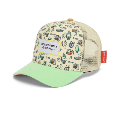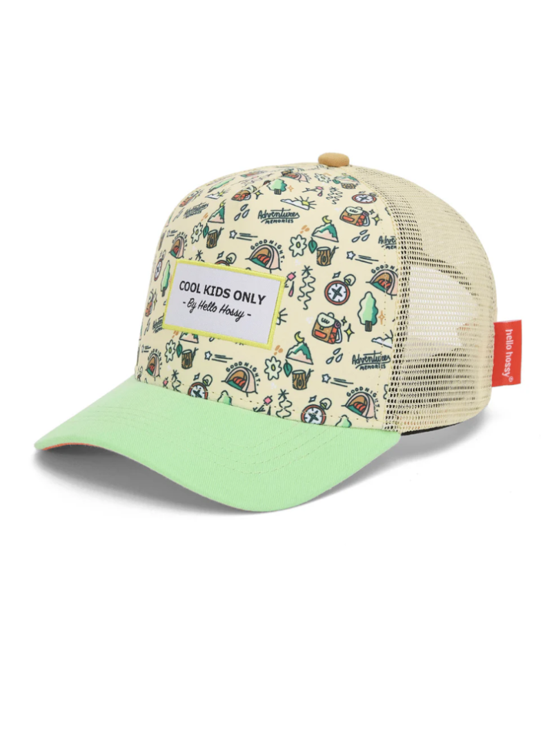 La Casquette pour enfants et bébés, Adventure, fait partie de notre collection de casquettes trucker pour enfants. Casquette avec motifs, thème montagne, visière courbée verte, elle offre une protection optimale pour les kids. Profitez-en, dès 9 mois.