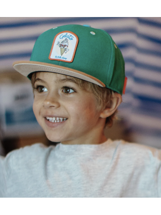 Ne loupez pas notre Casquette avec patch, pour enfants & adultes, Gelato, en édition limitée. Idéale pour faire des duos parents-enfants : mère-fille, père-fils... Un cadeau famille à offrir sans hésiter. Casquette avec patch, verte, unisexe, dès 9 mois.
