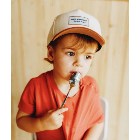 La Casquette pour enfants et bébés, Mini Beige, est une vraie perle. C'est un couvre-chef pour kids passe-partout, passe avec tout. 100% coton biologique, style baseball, visière courbée, finitions soignées, c'est un super cadeau pour les enfants !