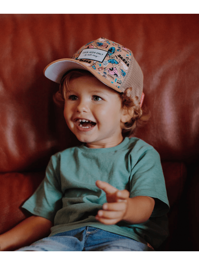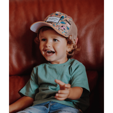 La Casquette Trucker pour enfants et bébés, New York, est un modèle best-seller. Le style trucker est un style iconique, apprécié chez les enfants comme chez les parents. Visière courbée, casquette colorée, imprimé inédit, elle a tout pour plaire.