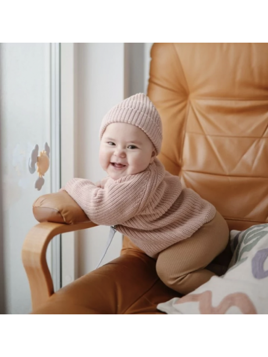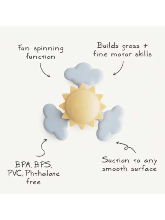 Il est également doté d'une ventouse qui permet au jouet de rester en place, ce qui évite les chutes accidentelles et encourage le jeu autonome. Essayez la ventouse sur les portes, les chaises, dans le bain, etc.
