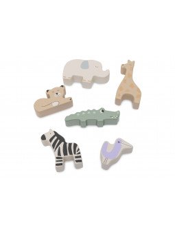 Faites en sorte que votre enfant rassemble tous les animaux de la jungle dans cette amusante maison en bois et passez des heures d'amusement. Les 7 animaux ne peuvent entrer que par leur propre compartiment, ce qui représente un véritable défi pour votre enfant. Jouer avec des jouets en bois aide à développer la motricité fine et cette maisonnette y contribue sans aucun doute! Tout le bois dans ce puzzle est 100 % certifié FSC .