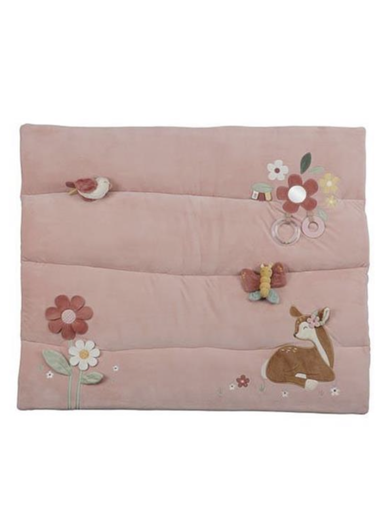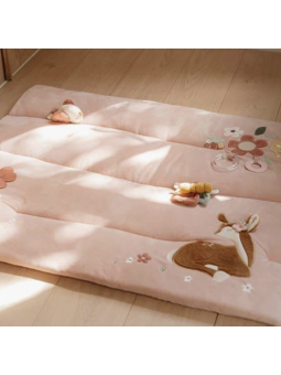 Plonge dans la magie du Jardin des Fées sur cet adorable tapis de jeu rose. Il y a beaucoup à découvrir et à voir ! Pars à l'aventure pour trouver les feuilles froissées, rencontre l'adorable cerf tout doux et joue avec le papillon et le petit oiseau. Il y a aussi un petit miroir pour l'exploration personnelle et un anneau transparent avec trois petites perles qui s'entrechoquent lorsqu'elles bougent. Ce tapis de parc rembourré stimule de manière ludique les sens de votre enfant grâce à ses différentes textures et activités.