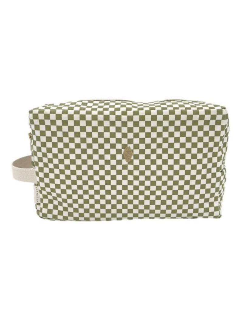 Craquez pour cette jolie trousse de toilette Thelma modèle Damier Olive de la marque Milinane. L'accessoire indispensable à glisser dans votre sac à langer pour avoir toutes les affaires de toilette de votre enfant à portée de main. Cette trousse de toilette Milinane possède une grande ouverture zippée pour vous permettre d'y mettre les couches propres de votre enfant par exemple !