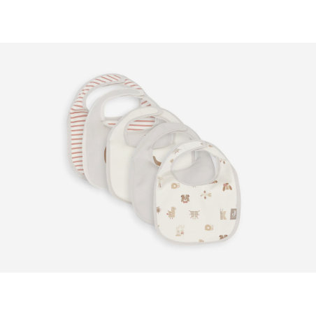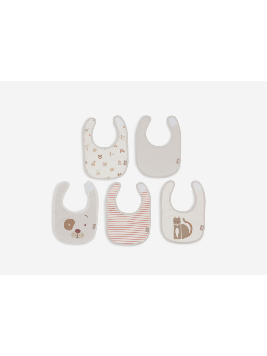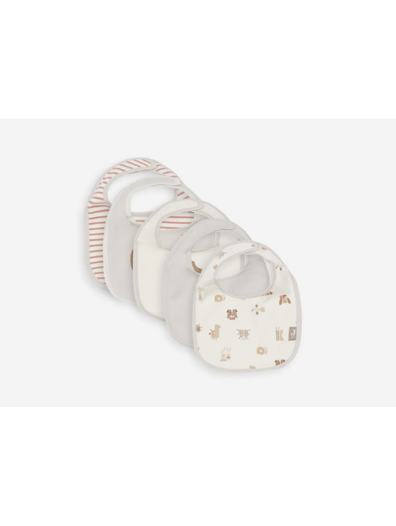 Animal Friends – Lot de 5 bavoirs imperméables avec fermeture velcro pour des repas tout en douceur ! Faciles à utiliser, ils gardent les vêtements de bébé bien au sec. Chaque bavoir est décoré de jolis motifs Animal Friends – votre petit reconnaît-il les animaux ?