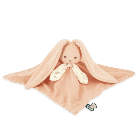 Mesurant 30 cm, cet adorable lapin pêche apportera amour et tendresse à votre enfant. Sa conception en bi-matière associe un doux velours côtelé à une viscose légère, offrant une douceur et un confort sans égal à votre tout-petit. Ce doudou lapin pêche dégage une délicatesse rafraichissante et possède un style raffiné et élégant. Son petit foulard lui confère une touche d'originalité, ajoutant une note de caractère à son apparence.
