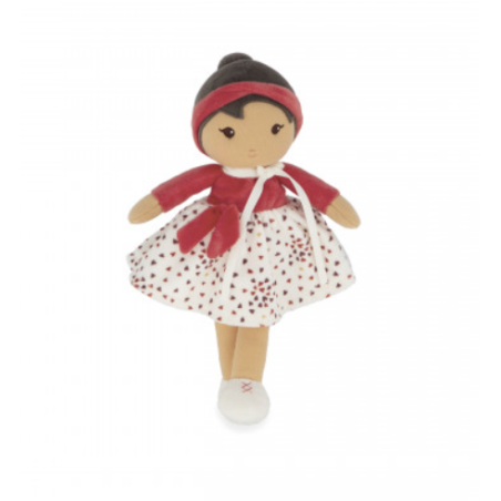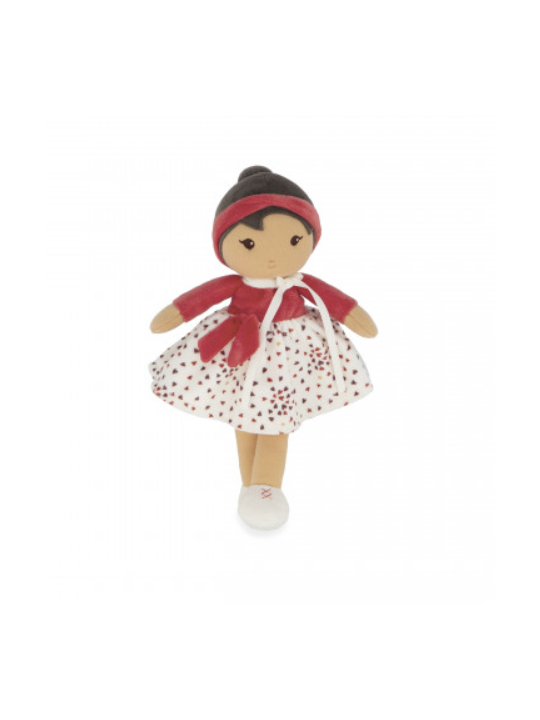 Faites la connaissance d’Émilie, une charmante poupée en tissu, dans son format 25 cm. Adaptée à bébé dès la naissance, elle fait partie de la collection de poupées Tendresse de Kaloo. La poupée Émilie porte une belle jupe à volants ornée de cœurs, reflétant sa joie de vivre et son amour pour la vie. Avec son adorable cache cœur rouge, assorti à son bandeau, elle est prête pour toutes les aventures. À ses pieds, des baskets confortables lui permettent d’arpenter les rues et d’en apprécier la beauté authentique. Émilie est une petite poupée qui incarne la liberté et qui aime célébrer la beauté de la vie.