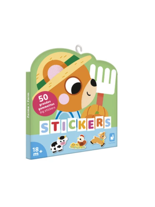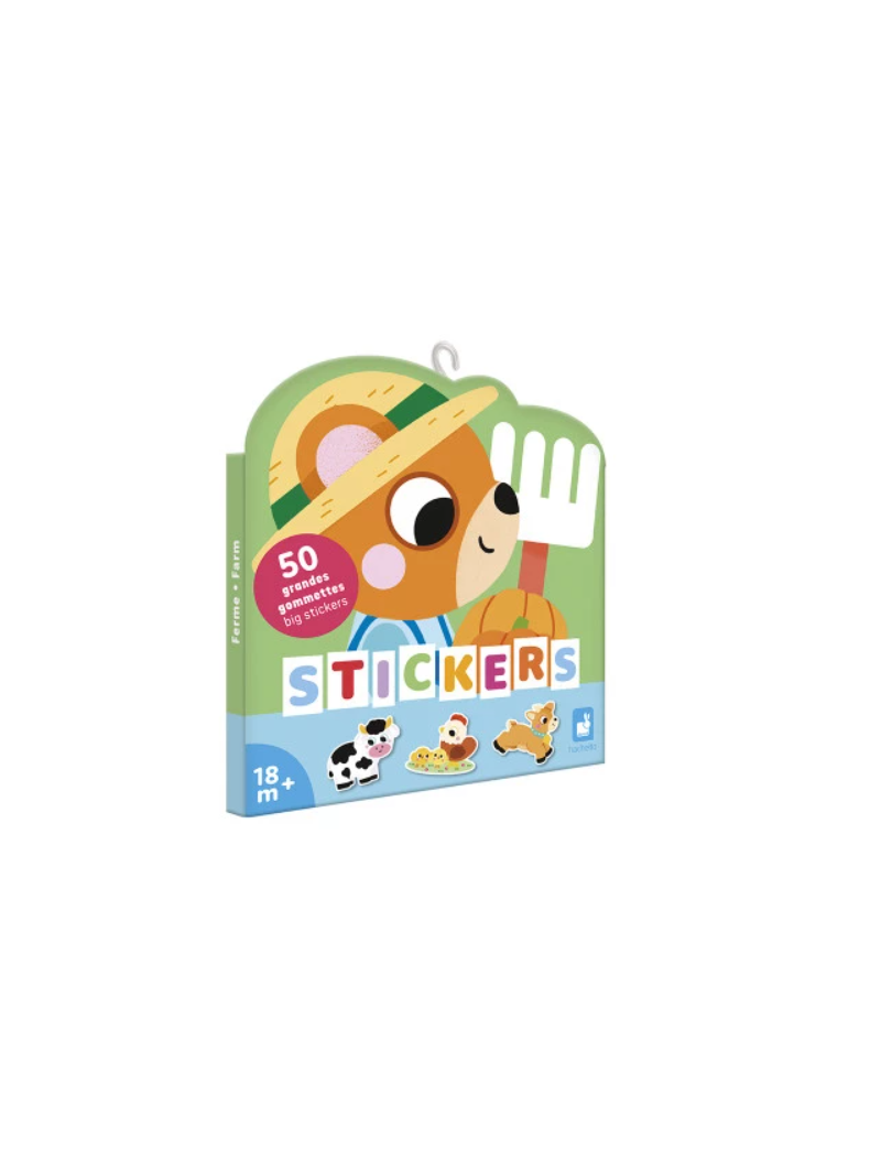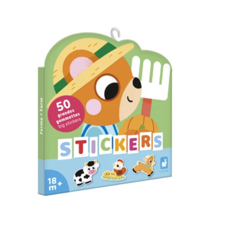À la recherche de grandes gommettes pour les petits ? Cette pochette de 50 stickers sur le thème de la ferme convient aux bébés et enfants dès 18 mois. Avec autant de grosses gommettes, on ne peut qu’être bien occupé … Et longtemps ! Pour satisfaire les amateurs d’autocollants, ouvrez ce joli pack en forme de petit ours et découvrez tout un univers champêtre : des activités de la ferme, du jardinage et de nombreux animaux s’en donnent à cœur joie dans cette pochette de gommettes ! La taille des stickers a été spécialement pensée pour s’adapter aux mains des plus petits : ils mesurent environ 7x8 cm