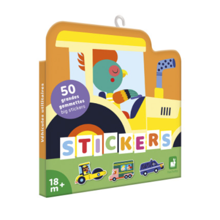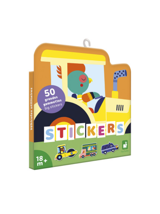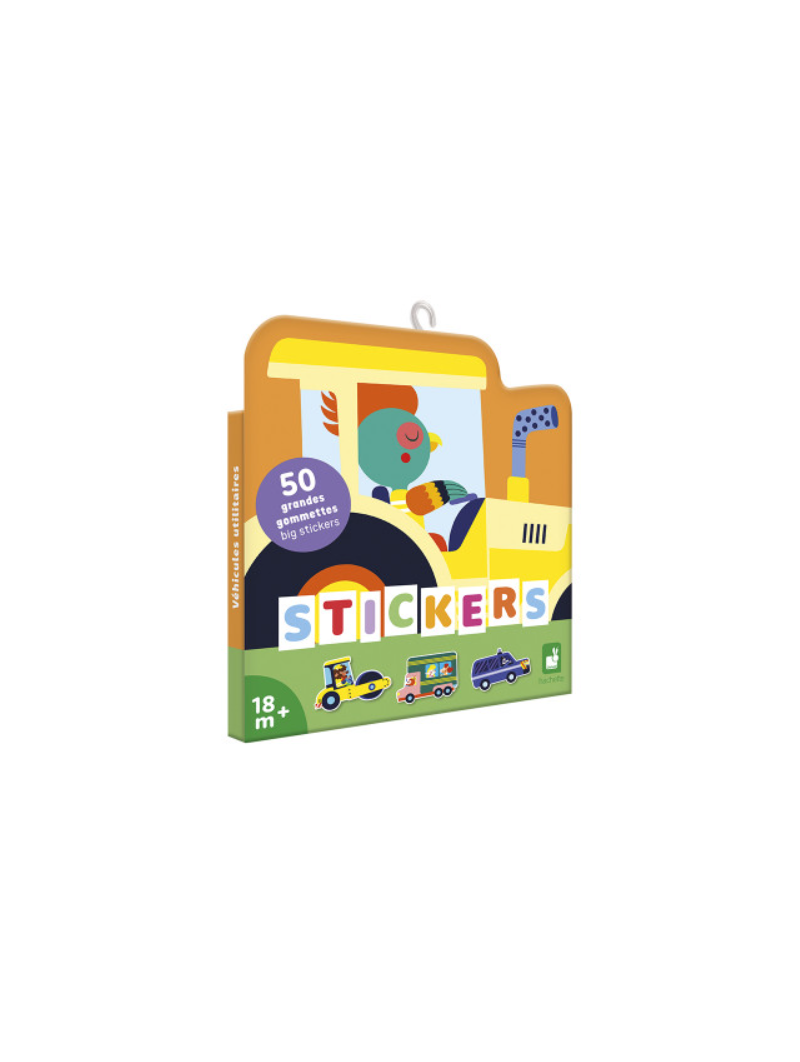 À la recherche de grandes gommettes pour les petits ? Cette pochette de 50 stickers sur le thème des engins et véhicules convient aux bébés et enfants dès 18 mois. Avec autant de grosses gommettes, on ne peut qu’être bien occupé … Et longtemps ! Pour satisfaire les amateurs d’autocollants, ouvrez ce joli pack en forme de bulldozer et découvrez une multitude de véhicules utilitaires : des engins de chantier rigolos, conduits par des animaux qui s’en donnent à cœur joie dans cette pochette de gommettes ! La taille des stickers a été spécialement pensée pour s’adapter aux mains des plus petits : ils mesurent environ 7x8 cm