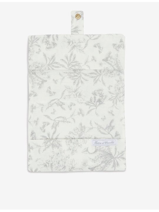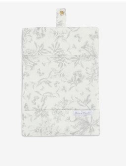 Housse de carnet de santé imprimé inspiration Toile de Jouy gris, dessinée par Tartine et Chocolat. Élégante et pratique, elle protège le carnet de santé de votre enfant tout en ajoutant une touche de charme classique.