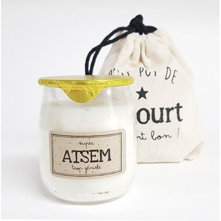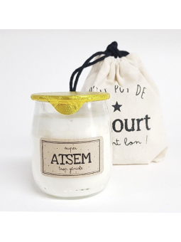 Original et régressif, notre bougie petit pot de yaourt 100% végétale qui sent bon la pistache-amande est le cadeau idéal pour remercier la gentille ATSEM en cette fin d'année scolaire