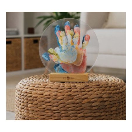 Le Family Colors permet à 5 membres de la famille d’apposer leur propre empreinte sur un panneau de plexiglas, créant par jeu de superposition un seul cadre coloré et personnalisé. Chaque kit comprend 5 panneaux transparents, 1 jolie base en bois pour support, 5 tubes de peinture, 1 rouleau pour application ainsi qu'un descriptif pour créer facilement les empreintes. Une façon moderne et originale d’afficher l’unité et l’amour familial dans la décoration intérieure.