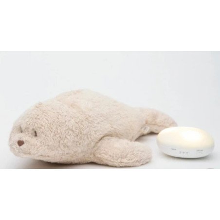 Le phoque magique Moonie en coloris Sable, créé en coton bio, est une veilleuse-peluche élégante et sensorielle. Dotée d’un module sonore diffusant des bruits naturels et d’une lumière douce, elle accompagne bébé dans ses nuits avec style et sérénité. Un objet rassurant et nomade pour toute la famille