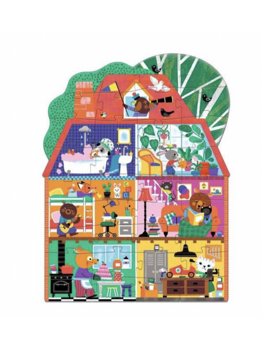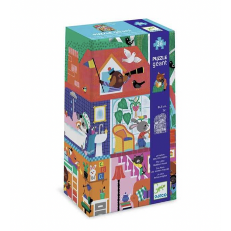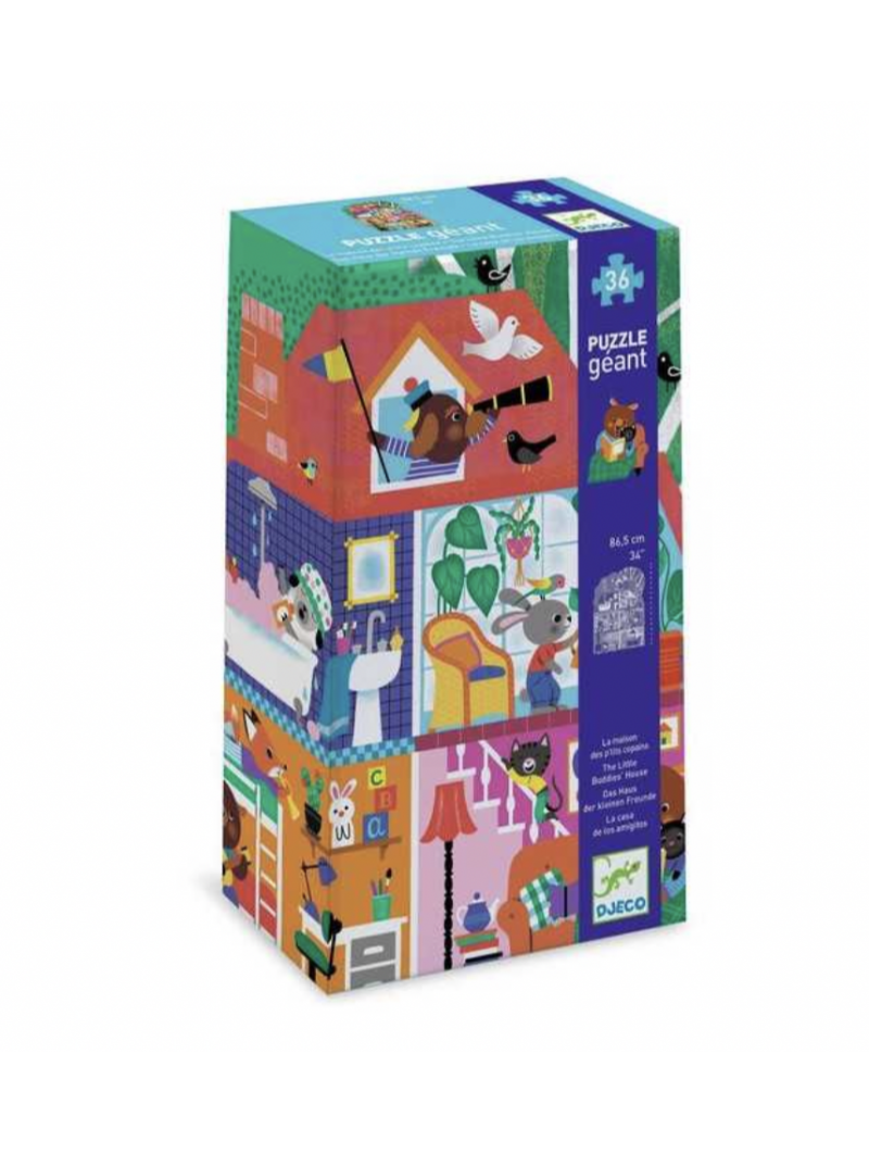 Découvrez le puzzle La maison p'tits copains de Djeco, un puzzle géant de 36 pièces en carton pour les enfants à partir de 3 ans.