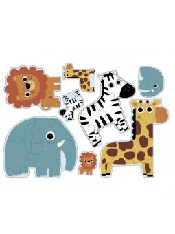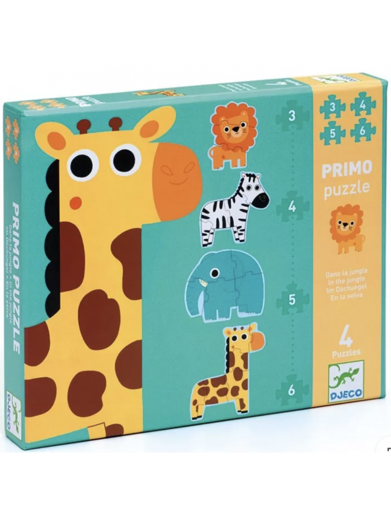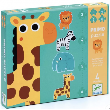 Le coffret Puzzles Primo Dans la jungle contient 4 puzzles de 3 à 6 pièces avec une difficulté croissance afin d'initier les tout-petits. Dès 2 ans.