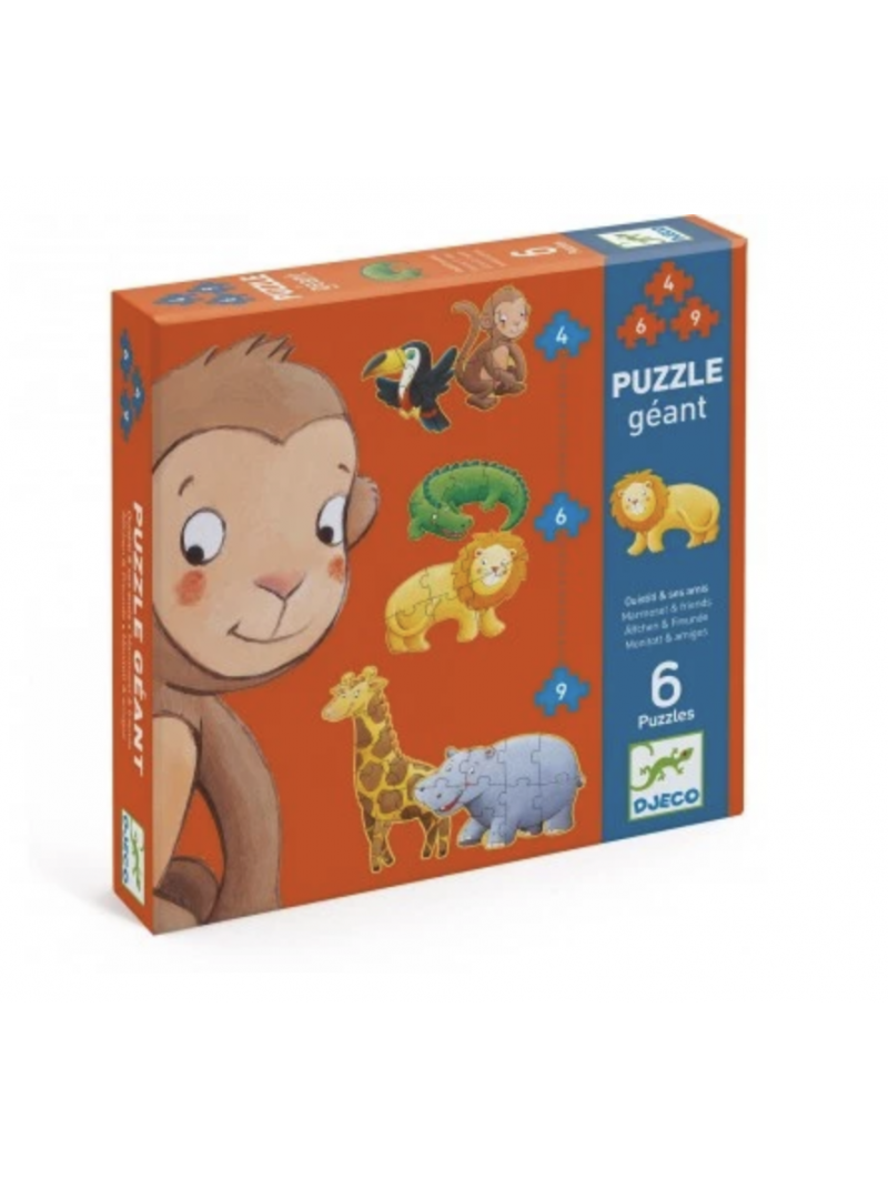Votre enfant est à la découverte de la nature et se demande quels animaux se trouvent dans la jungle ? Offrez le puzzle géant Ouistiti et ses amis de la marque Djeco !