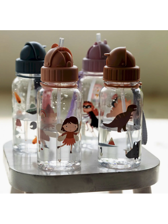 Nouveau modèle de bouteilles en plastique sain, exclusives de Tutete. Cette bouteille a une paille en silicone rabattable qui sort automatiquement lorsque le couvercle est ouvert et est idéale pour l'école. Elle a une longue poignée qui permet de la suspendre au sac à dos ou à la poussette. Caractéristiques Fabriquée en Tritan Capacité 500ml Dimensions approximatives : hauteur 19cm x diamètre 7cm Paille en silicone Ce couvercle rouge ne peut pas être personnalisé Sans BPA Convient pour le lave-vaisselle à moins de 60°C