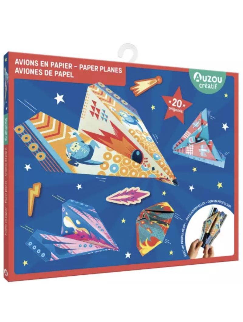 Grâce à cette pochette, les enfants peuvent réaliser 20 avions en papier super rapides ! La pochette propose en plus un propulseur ultrasonique ! Matériel : 20 feuilles d’origami, un propulseur, des autocollants et un livret de pas à pas.