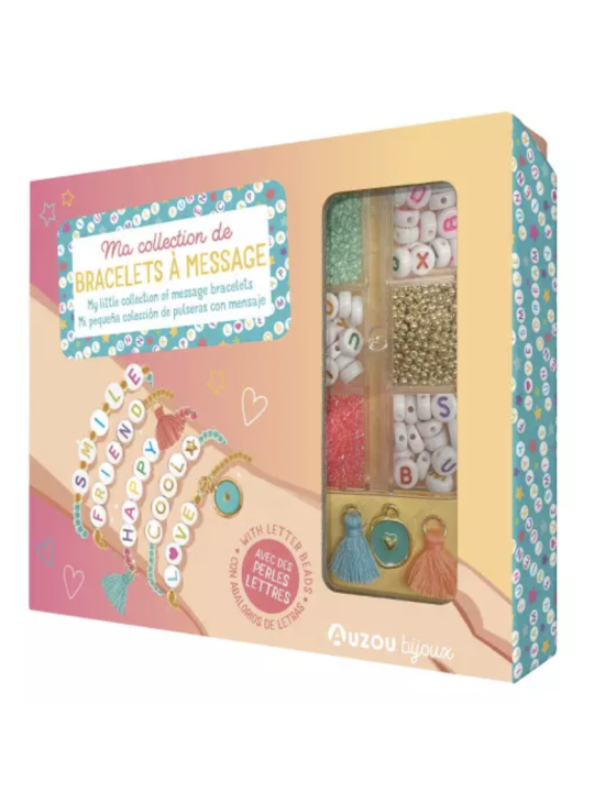Réalise une jolie accumulation de 5 bracelets à messages grâce à tout le matériel de ton coffret ! Matériel : 25 perles lettres Des perles de rocailles Des pendentifs