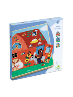 Le Puzzles bois 3 niveaux - Chez Moo de la marque Djeco est un jeu en 3D parfait pour stimuler l'imagination, la dextérité et l'apprentissage de votre enfant. Conçu avec une attention particulière aux détails, ce puzzle en trois niveaux déploie un univers palpitant qui raconte une histoire à chaque étage, rendant chaque session de jeu passionnante et unique.