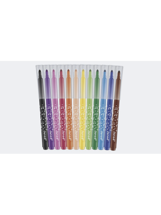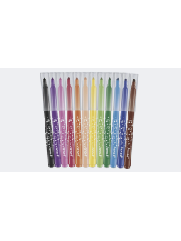 Ajoutez de la couleur à chaque création ! Ce set de 12 feutres offre une palette de couleurs lumineuses qui donnent vie aux dessins des enfants. Ces feutres ont été conçus pour durer et pourront donc être utilisés pour la réalisation de nombreux dessins et coloriages. La pointe conique des feutres permet une grande polyvalence : les enfants peuvent tracer des lignes fines pour les détails ou colorier en large pour remplir rapidement les espaces. L'encre est facilement lavable, ce qui facilite le nettoyage après chaque session de coloriage. Des feutres de qualité qui garantissent des heures de créativité tout en restant faciles à nettoyer. Produit pour les enfants à partir de 3 ans