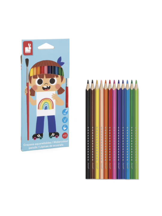Contenu : 12 crayons aquarelle, 1 pinceau.