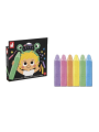 Contenu : 6 craies de couleur (bleu, vert, jaune, orange, rose, violet), 1 boîte de rangement réutilisable.