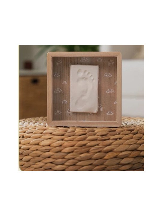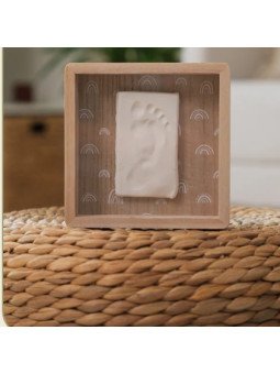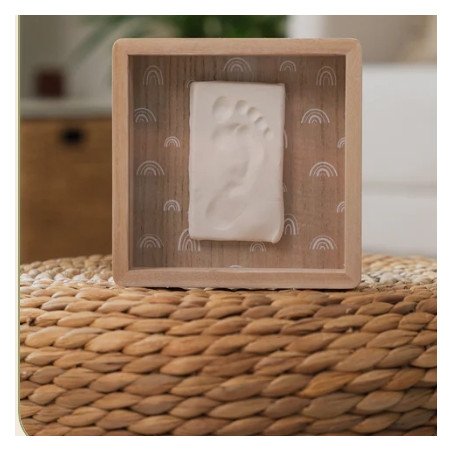 La Boîte Empreinte - Rainbow permet de créer un souvenir des petites mains ou des petits pieds de bébé. Cet élégant cadre carré avec son motif arc- en-ciel peut être posé sur un meuble ou fixé au mur pour décorer n'importe quel espace de la maison. Il comprend un cadre en bois avec couvercle de protection, un sachet de pâte hypoallergénique, un rouleau et un descriptif pour créer facilement l'empreinte.