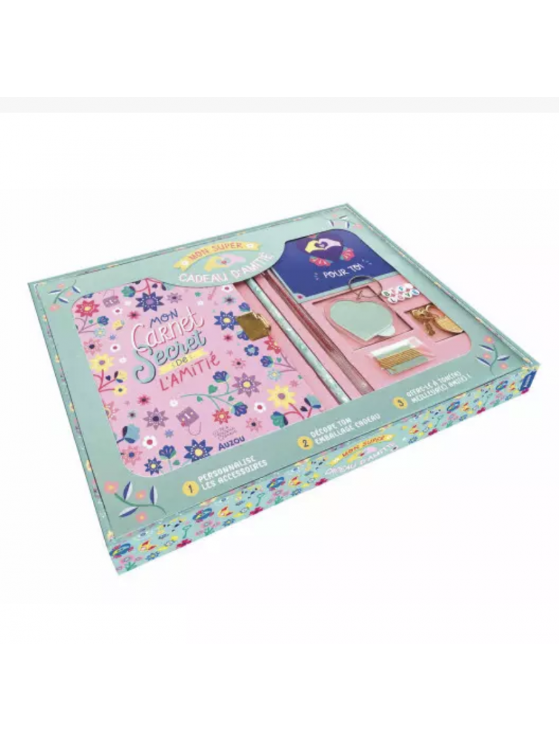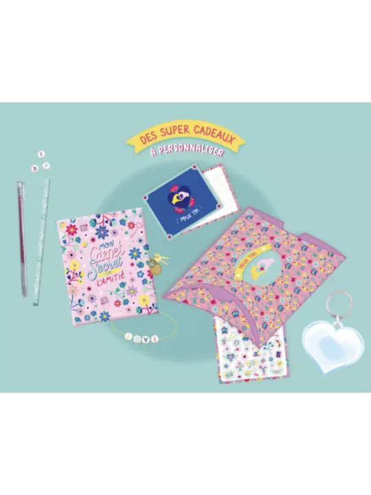 Dans ce joli coffret, découvre plein de super accessoires de papeterie à personnaliser, pour ensuite les offrir à ton ou ta meilleur(e) ami(e). Pour un cadeau éternel à l'image de votre amitié! Contenu: - Un crayon à offrir - Un stylo glitter à offrir - Un carnet secret à personnaliser avec un mot et à offrir avec son cadenas coeur - Un porte-clés à personnaliser avec une photo - Un bracelet BFF et/ou LOVE à réaliser et à offrir - Une carte pour accompagner ton cadeau - Un coffret-cadeau pour emballer joliment le tout - Des autocollants pour encore mieux tout personnaliser