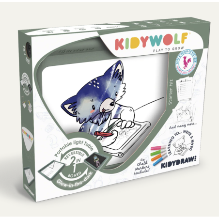 KIDYDRAW PRO est une tablette lumineuse nomade. Votre enfant pourra reproduire fidèlement des lettres, des chiffres ou n'importe quel dessin existant. Biface, la partie arrière sert également de tableau noir avec un effet néon qui fera ressortir les couleurs du dessin de votre enfant dans l'obscurité.