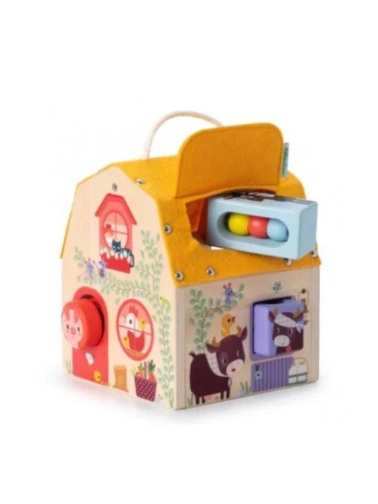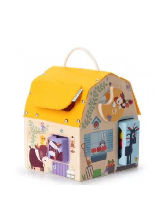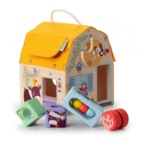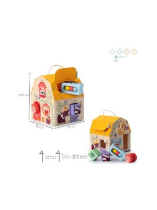 Découvrez la maison sonore à formes de Lilliputiens, un superbe jouet d'éveil en bois et en feutrine pour les enfants dès 12 mois, avec lequel ils vont pouvoir développer leur motricité fine, mais également inventer de belles histoires sur le thème de la ferme.