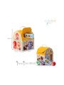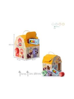 C'est la fête à la ferme! Aide les animaux à entrer dans la maison en associant les formes et les couleurs. Chaque animal a une forme et un son différent. Un régal pour les mains, les oreilles et le cerveau de votre enfant. Bien plus qu’une maison sonore, cette ferme est une belle boite à formes.