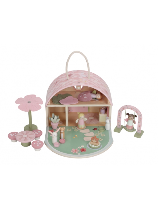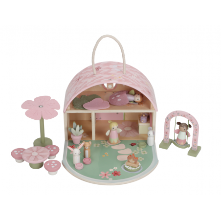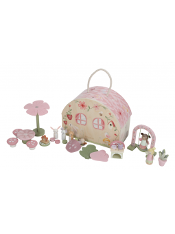 Bienvenue dans la maison de poupée Very Fairy Dollhouse ! Dans le Jardin des Fées, là où fleurissent les plus belles fleurs, les fées dansent. Cette charmante maison de poupée, dans laquelle vit la fée, est un refuge magique pour des aventures enchantées. Elle est décorée de branches de fleurs et d'adorables petites créatures des bois. Sa porte est toujours ouverte, avec des chaises, une table ronde et un parasol pour que la fée et ses amis puissent pique-niquer et rire ensemble. Lorsque lla nuit tombe, il suffit de replier la maison et de la ranger soigneusement. Ce chalet douillet, digne d'un conte de fées, est parfait pour des heures de jeux imaginatifs et de rêves enchantés.