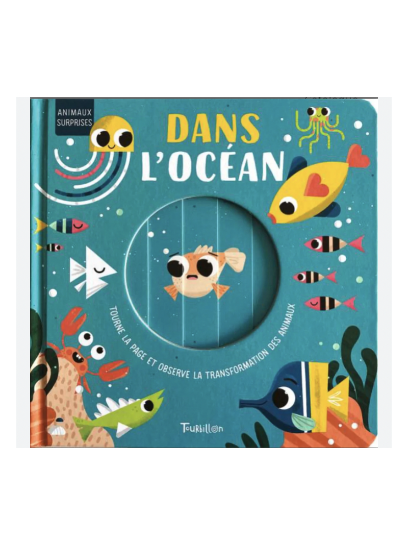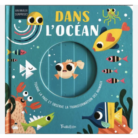Un livre d’éveil documentaire animé pour découvrir les Animaux surprises vivant Dans l’océan… dès la couverture !