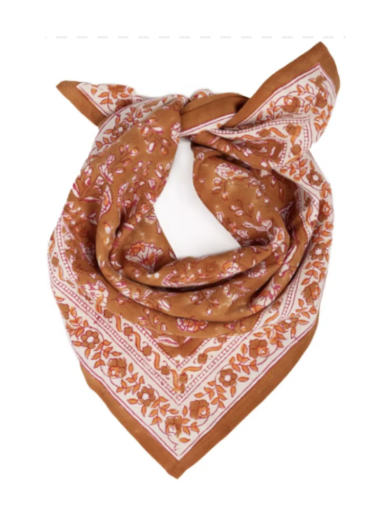 Un carré coloré et imprimé à la main sur un tissu doux et léger, qui enveloppera votre cou pour un petit look boho-chic ! À porter comme autour du cou, dans les cheveux ou sur la anse de votre sac.