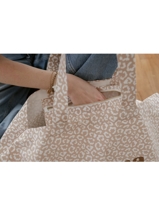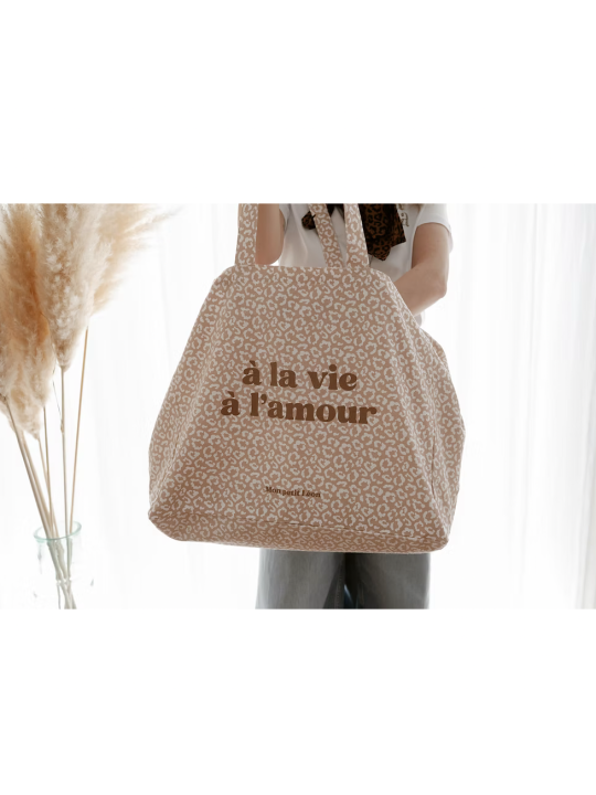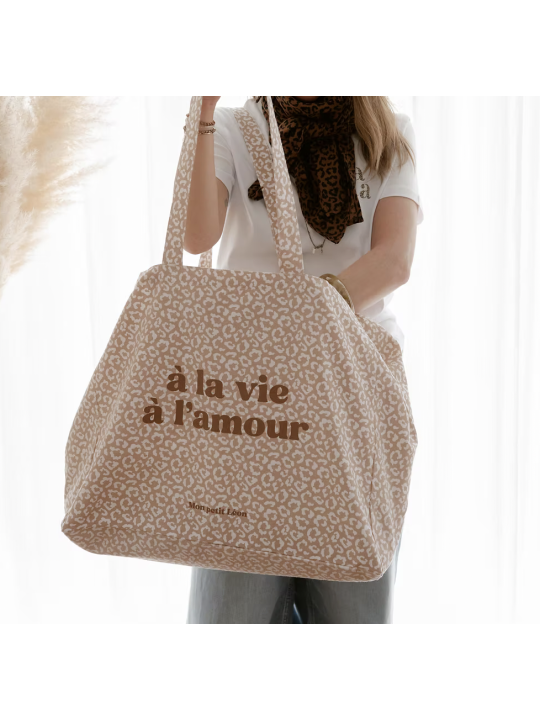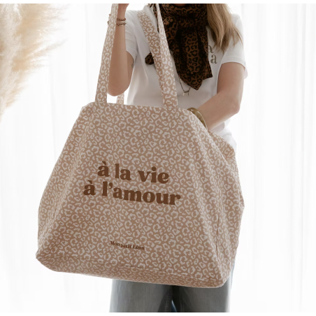 Cabas XXL leopard beige nude A la vie à l'amour