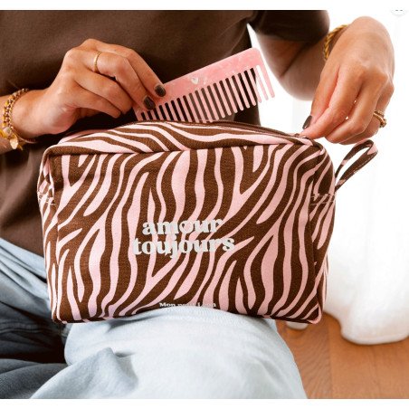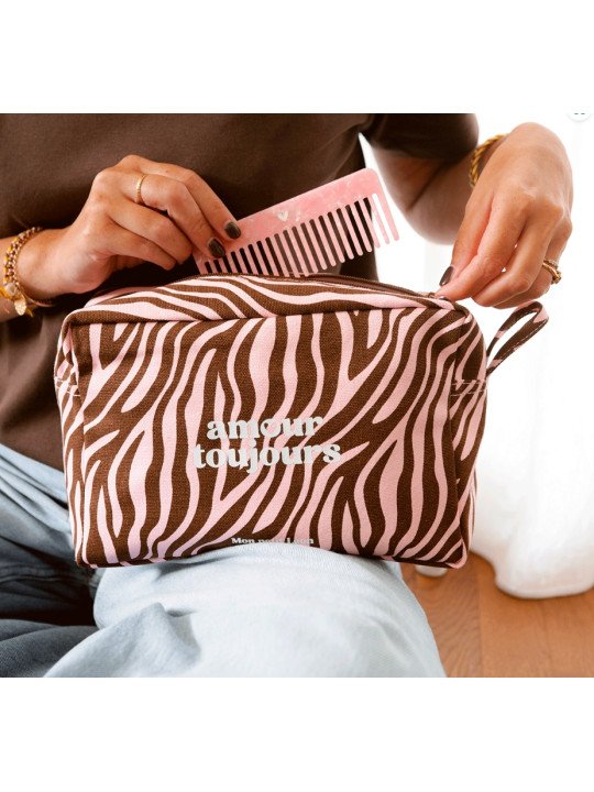 Trousse de toilette coton - Zèbre rose, Amour toujours