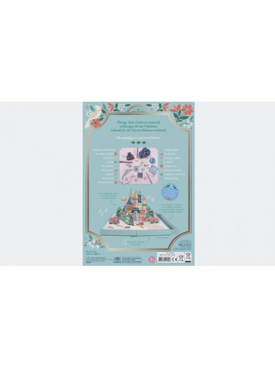 Le calendrier s'ouvre en deux et laisse apparaître un magnifique pop-up sonore. Les 24 surprises créatives sont cachées dans les deux tiroirs des côtés, dans des plateformes amovibles. Une fois toutes découvertes, les plateformes peuvent être enlevées et les tiroirs restent pour former un joli coffret.