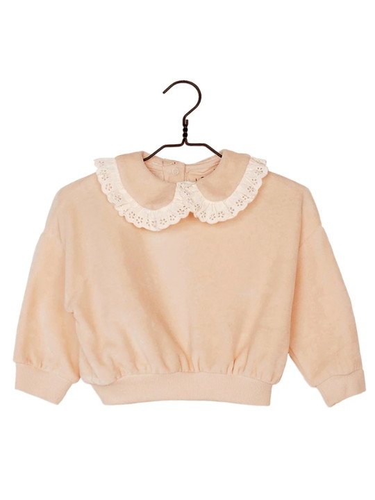 Sweat Enfant à Col Claudine Brodé – Beige Poudré