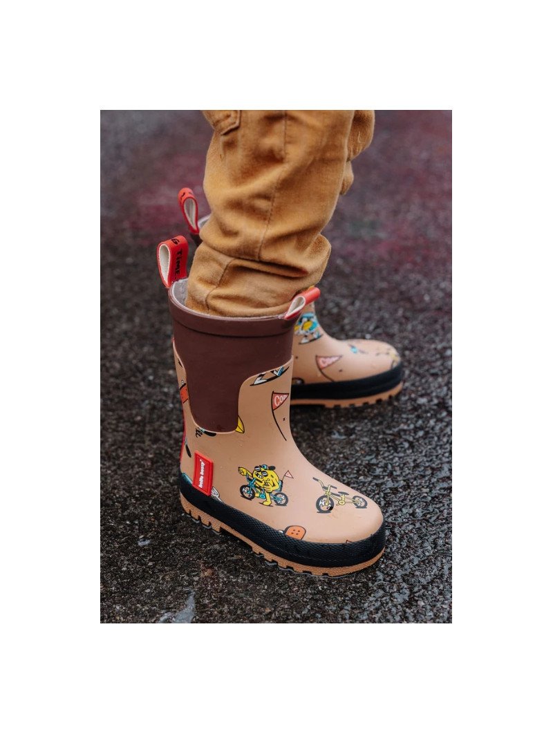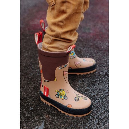 • Faciles à enfiler : Les languettes rouges au talon et sur le devant permettent à l’enfant de mettre et enlever ses bottes facilement et en toute autonomie.